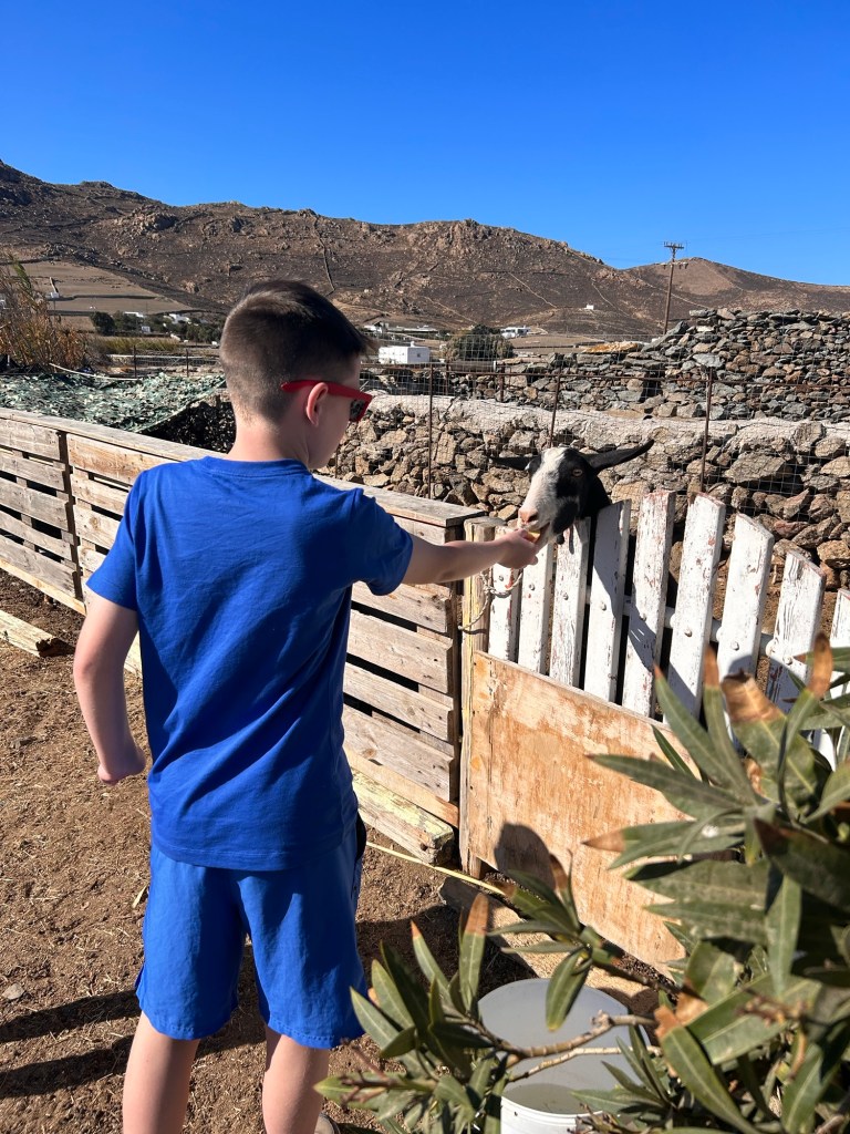 We visited this farm / vineyard which was a short drive from our villa and had a lovely, authentic Greek meal and short tour of the vineyard. This was a great place to visit with the kids who got to feed the donkey and goats after the meal.
