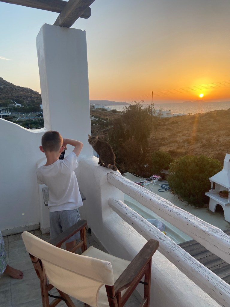 If you don’t like cats then Mykonos might not be the place for you. There are a lot of stray cats everywhere, including in the grounds of our villa. Luckily we’re all animal lovers and after realising that we couldn’t shoo them away from the garden we made friends, the kids even gave them names (not sure they understood English although they would come if called by their new names).