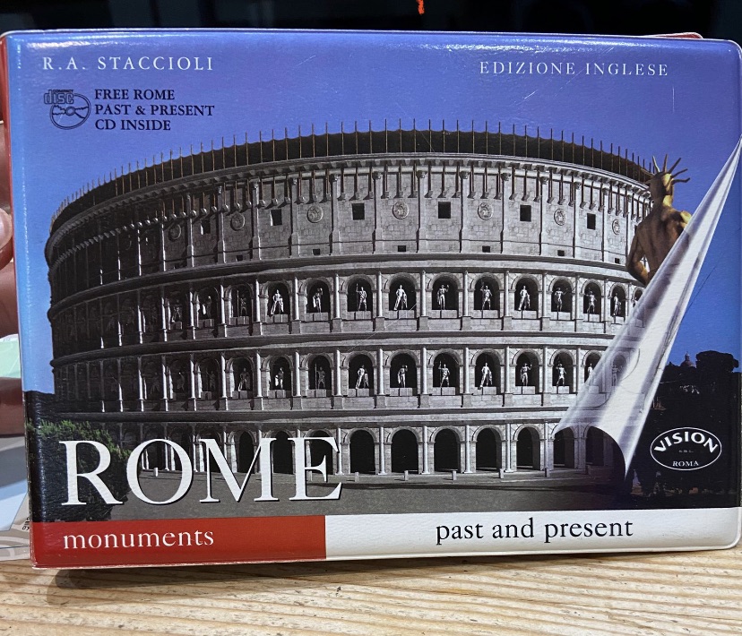 For a guide to the ancient sites we took a book that we purchased on our first visit to Rome back in 2004, prior to getting married or having children – Rome Monuments Past and Present – a guide with reconstructions of Ancient Rome. This is a really good guide particularly for kids as it contains photos of the ruins and over-lay pages with artists impressions of what they would have looked like in the past.