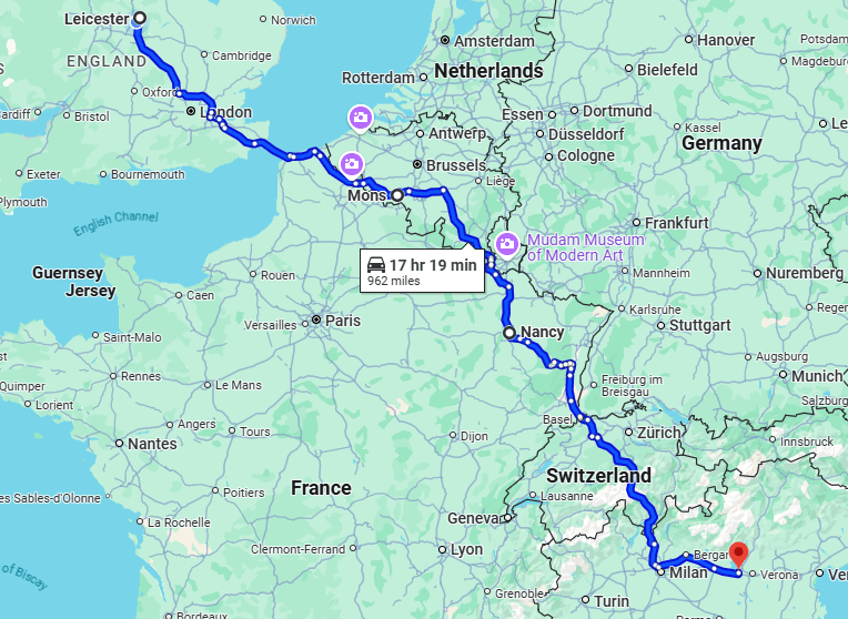 We had planned a more relaxed journey home giving ourselves three days travel and two night stopovers in hotels booked in Besancon and Reims in France. However, things don’t always go to plan and we had to make alternative travel plans for the journey home …more on that below.