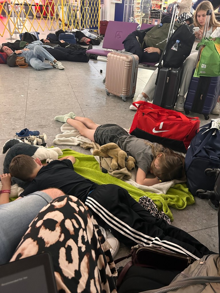 We eventually made it back to the UK but at such short notice we were unable to find an airport taxi available from Stansted to Leicester. Luckily there is a train station in our village with a direct train from Stansted to Leicester so we decided to catch it home as the best alternative. This worked out well apart from the 5 hour wait at the airport for the first train to Leicester at 05:30. Some of us ended up sleeping on the airport floor and then we all fell asleep on the train itself.