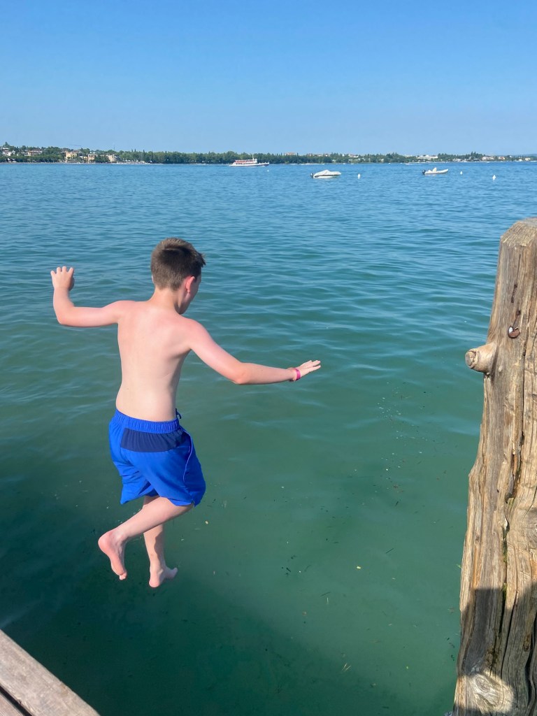 We love Lake Garda as we’ve found that the weather is always hot, swimming in the fresh water of the lake is a welcome change from salty seawater, the locals are really friendly and we all love Italian food. On top of that, the local Bardolino red wine and Prosecco is very cheap.