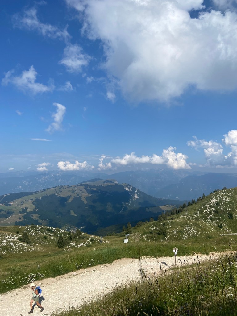 The climate at the top of the mountain is cooler than the intense heat of the town and it was nice to spend an hour or so walking further uphill to vantage points over looking the whole of Lake Garda to the west and the Dolomite mountain range to the east. We even saw a golden eagle (which we did have to Google to check that they actually inhabited the mountain range!).