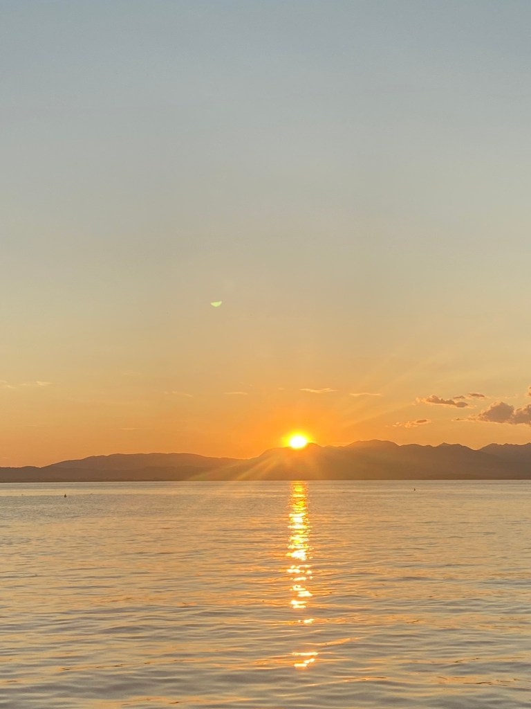 With the help of our friends (who had luckily returned their hire car a few days before the storm), lots of wine and prosecco, and the benefit of being in a beautiful location with family and good friends, nearly normal holidaying was resumed. My favourite part of the last few days was taking some food and drinks down to the lake late afternoon enjoying the water and watching the sun set behind the mountains across the water to the west.