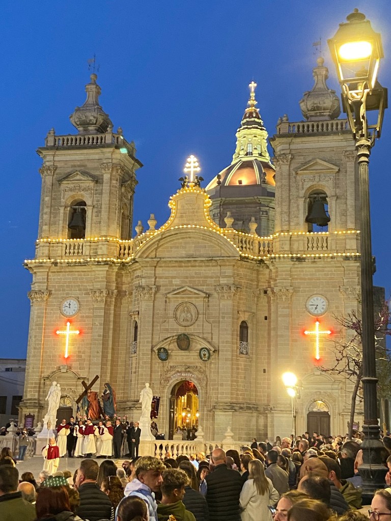 Mid‑week, we heard whispers about an Easter procession taking place on Good Friday evening. Curiosity won, and we joined the crowds in the square as the sun dipped behind the church.