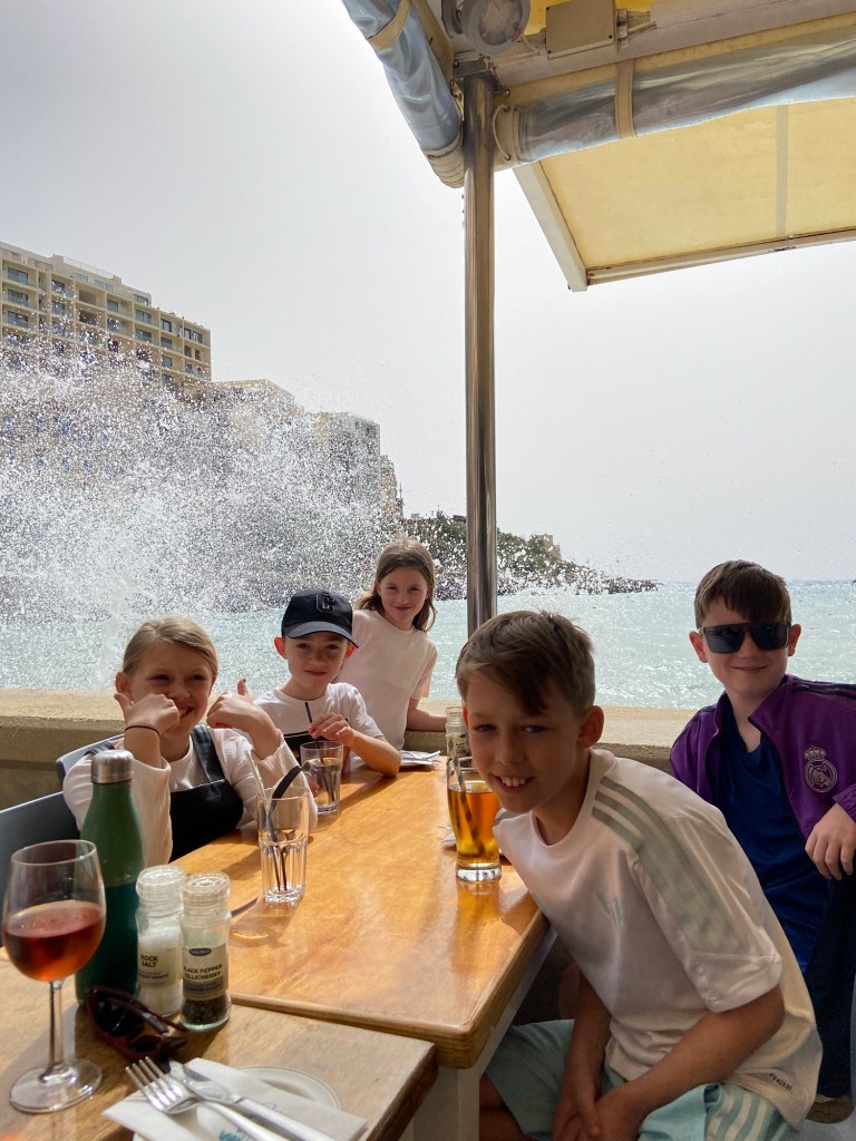 This trip was a first for us in more ways than one — our eldest daughter, nearly 17, was off in France with her grandmother, so we travelled as a family of five. Our crew: a 13‑year‑old, 9‑year‑old twins, and two excited parents. We were joined by friends with two kids (10 and 8), which meant five children, two hire cars, and one mission: explore every corner of Gozo. You can see more photos of our stay by clicking on the Instagram and Facebook social media links at the top of the page.