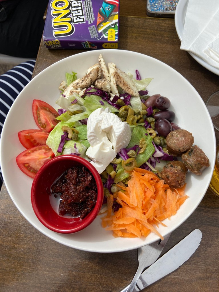 It was a windy day and the sea temperature was cool but we took the opportunity for a bit of open water swimming while the few other tourists on the beach watched on wrapped up in coats and jumpers (see photographic evidence here – https://www.instagram.com/p/C5JOG1_Mg0C/?utm_source=ig_web_copy_link&igsh=MzRlODBiNWFlZA==)