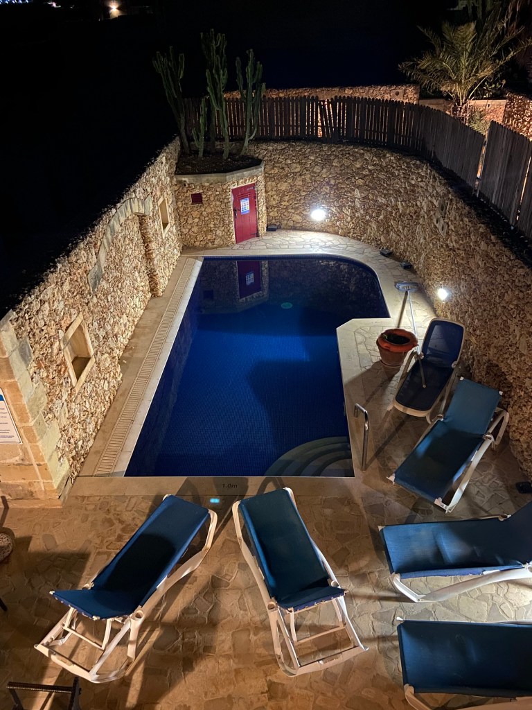 We booked a three storey end-town house in Xaghra which had an outdoor pool and a hot tub. The house was very spacious with large living area, dining and kitchen and five large bedrooms each with an en-suite shower or bath and WC. There were also two further WCs on the ground floor! https://www.airbnb.co.uk/rooms/778066782546236182