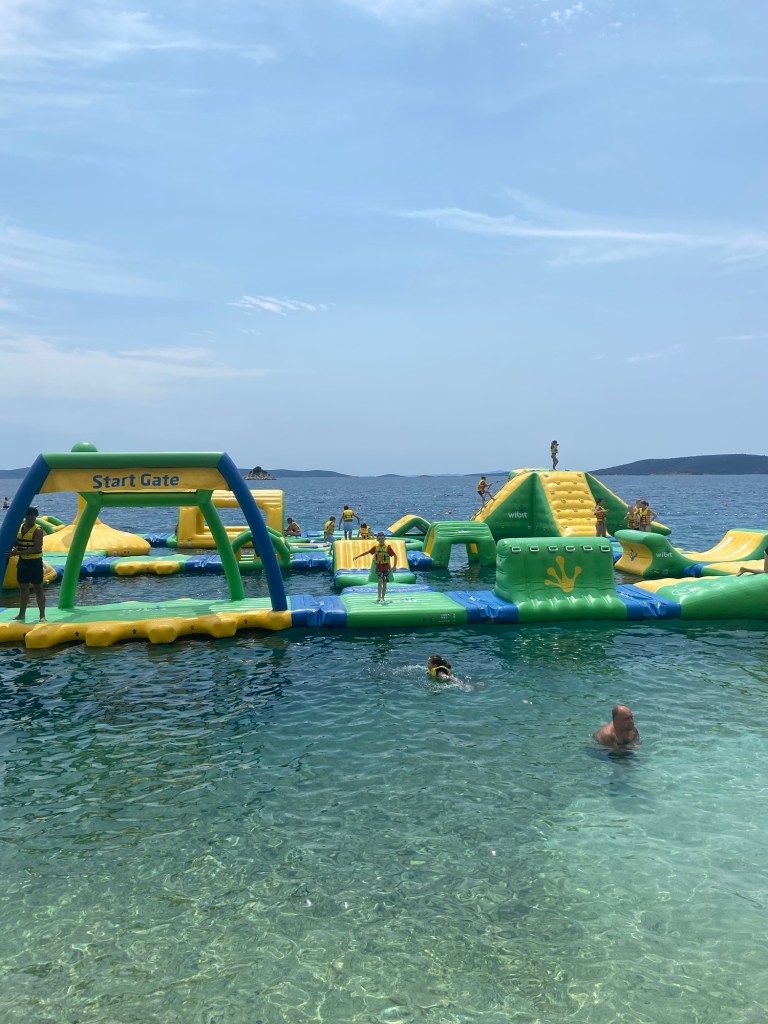 The camp site does have an inflatable assault course on the sea which was available at an extra cost. The children were desperate to have a go and we booked a slot one afternoon and everyone brave enough had great fun scrambling around and jumping off the high platforms into the sea below.