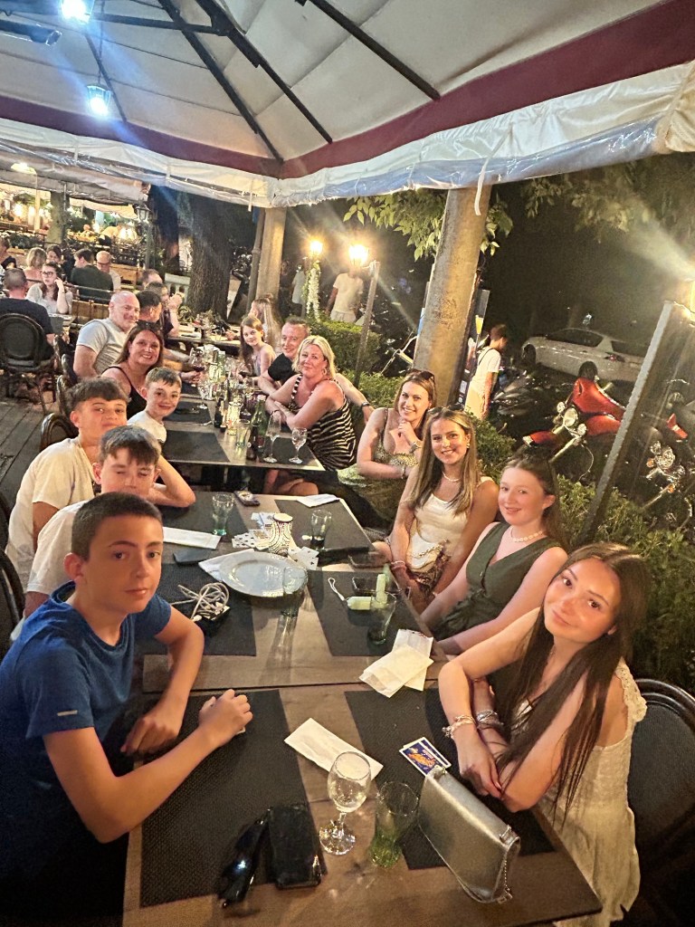 Leaving the back gate of the camp site there is a small bay a short walk along the coast with a number of local restaurants where we enjoyed some delicious evening meals. We did find it a little difficult (and stressful) trying to get a table for 14 people but we persevered and the cuisine was great and the service friendly and welcoming.