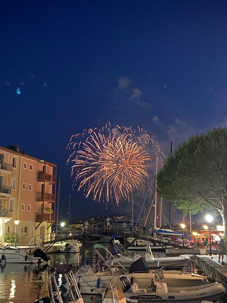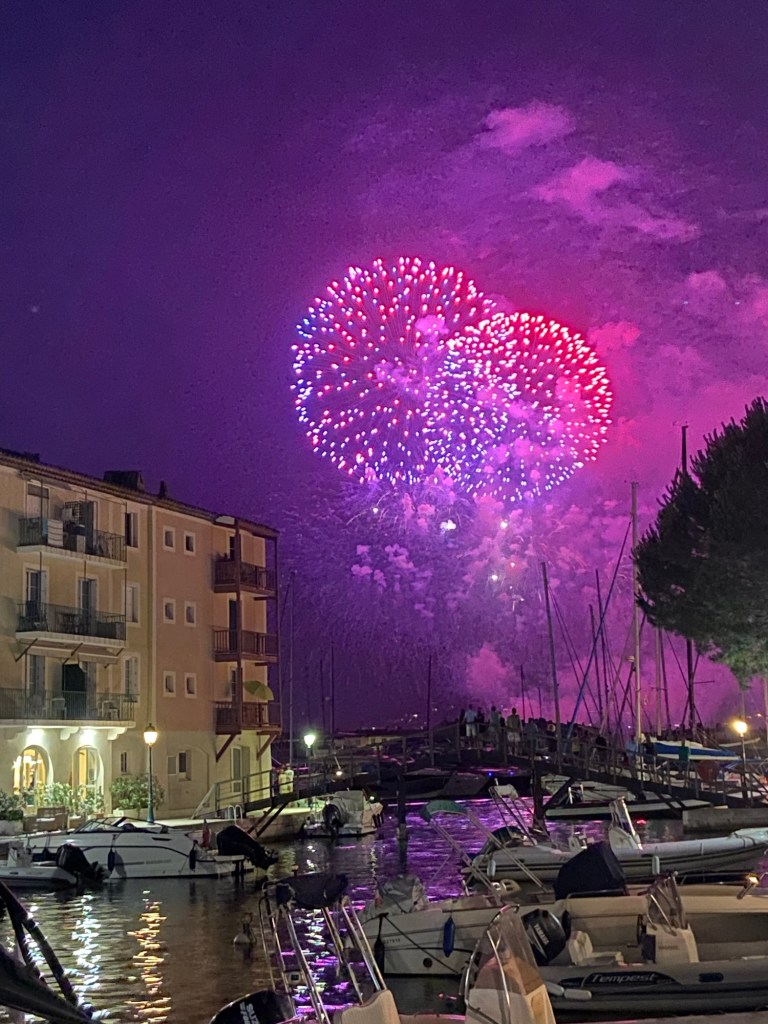 Sitting on the north shore of the Bay of St Tropez, Port Grimaud is a picturesque sea-side town created by an architect in the 1960s in a Venetian style. The centre of the village contains a number of small tourist shops and restaurants and a marina. This was a twenty-five minute walk from the campsite and we enjoyed a few meals here including on Bastille Day when we were treated to a brilliant firework display.